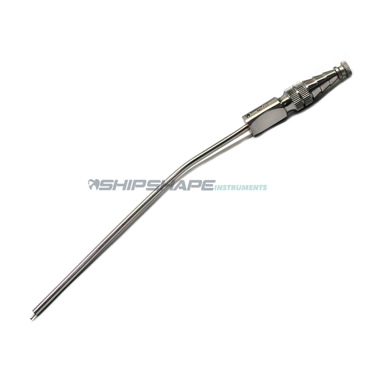 The Suction tube is used in dental surgeries and procedures that require precise suctioning. It is designed to remove blood, saliva, and other fluids from the surgical site, ensuring a clear view and a clean working area for the dentist or oral surgeon.