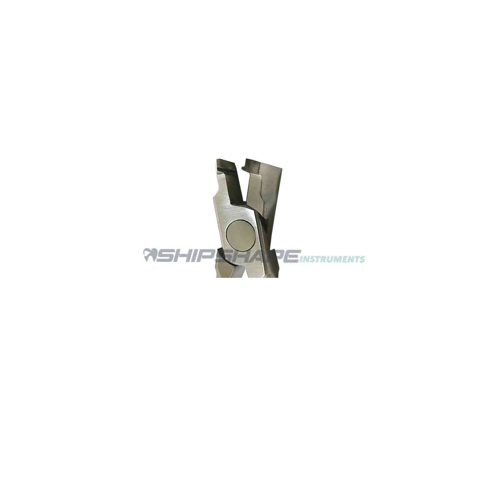 This Plier is used for cutting and trimming the distal ends of arch wires in braces to prevent injury or discomfort to the patient.