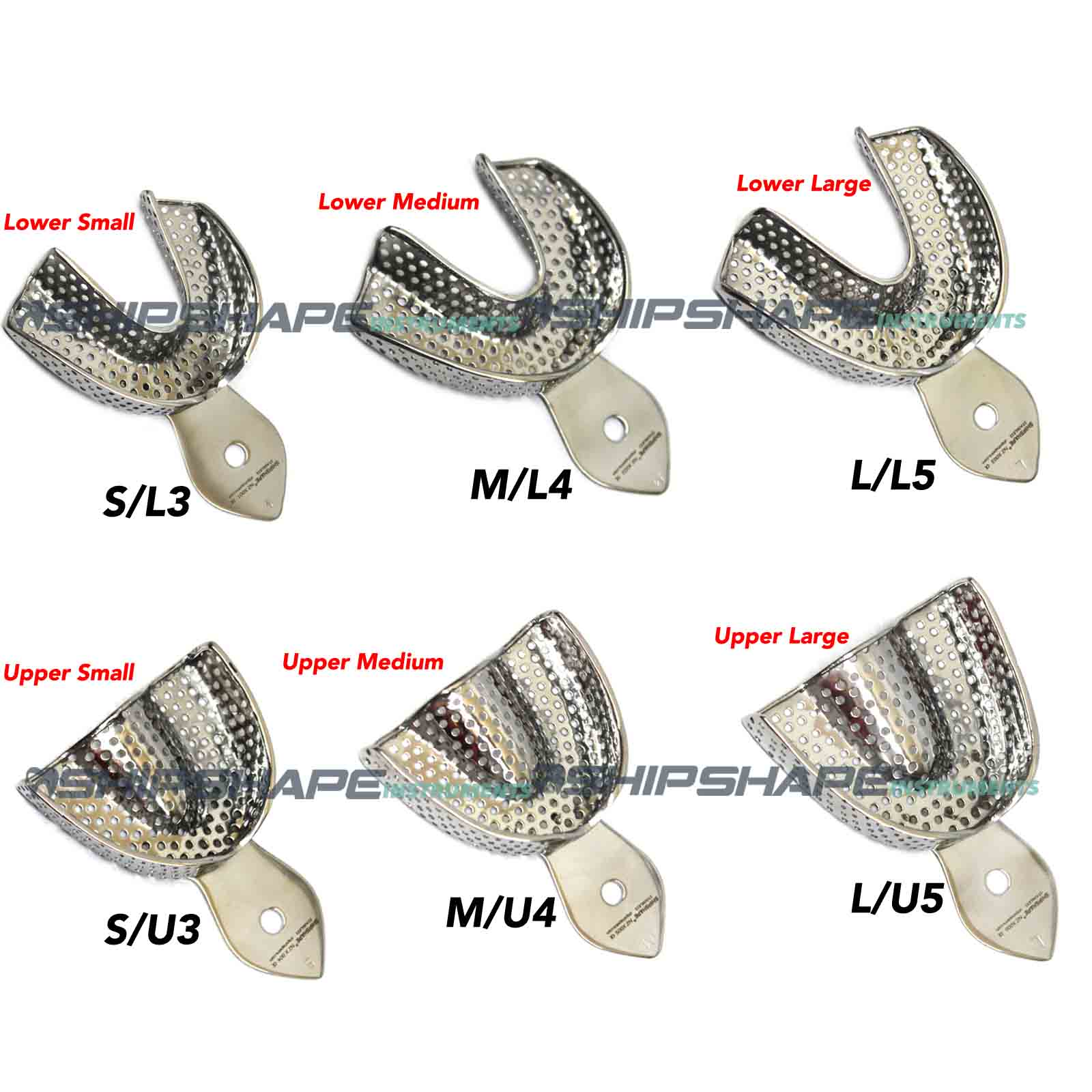 Impression Trays Perforated set of 6pcs This tray is used during dental procedures to take accurate impressions (molds) of the upper/Lower teeth and surrounding structures. It is typically used with alginate or other impression materials
