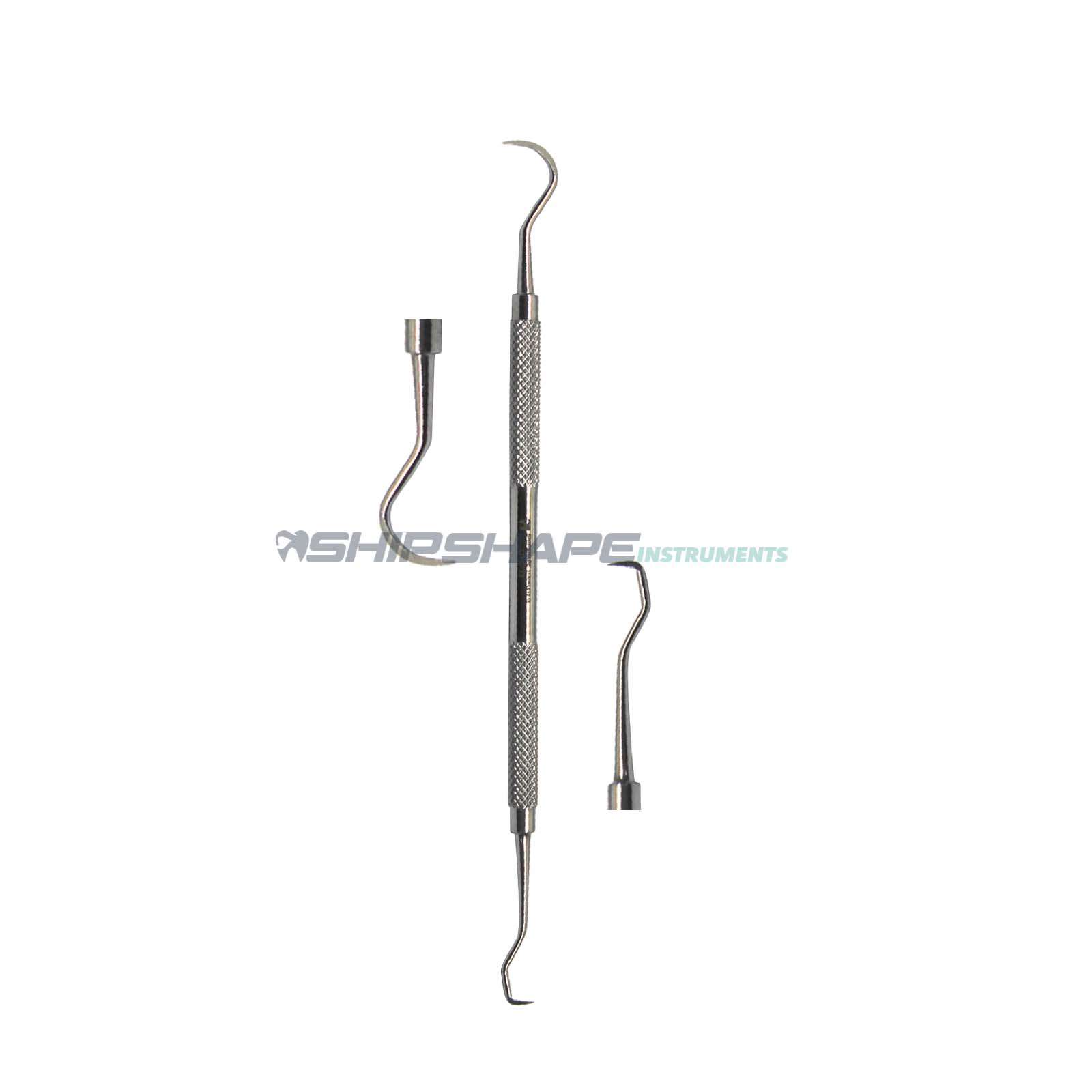 Towner Jacquette Scaler U15/33, The sickle scaler tip can be used to remove calculus from the developmental grooves and blood grooves in canine teeth.